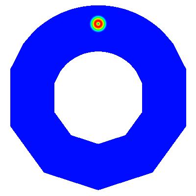 It is difficult to show this effect in a movie since the waves are getting smaller quickly and the smaller ones will not be visible. We therefore show only a movie in a similar configuration as the one above, but in a truly two dimensional domain.