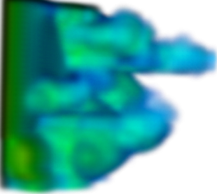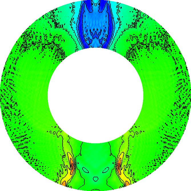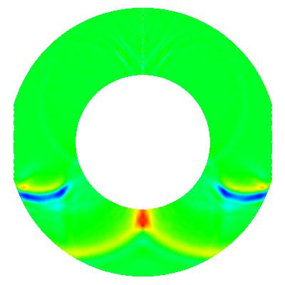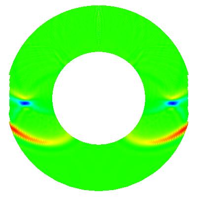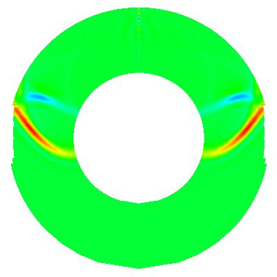 The following picture and movie are from a simulation in a cylindrical coordinate system:| Click here for a movie (3.1MB) | ![]() |