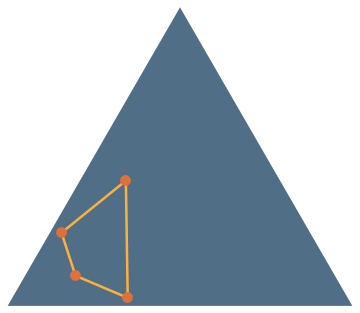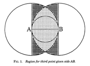 For example, when the vertices of the triangle are chosen from independent, identically-distributed Gaussians on \(\mathbb{R}^2\).