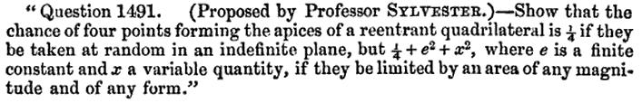 Modern Reformulation: What is the probability that all vertices of a random quadrilateral lie on its convex hull?